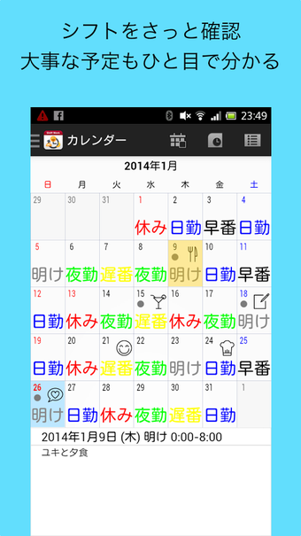 シフト勤務カレンダー(シフカレ)は、シフト勤務の予定を管理できるツールです。